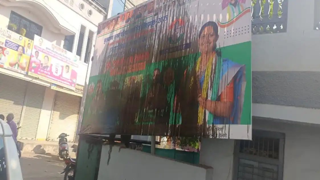Buldhana निवडणुकीच्या पूर्वसंध्येला खळबळ काँग्रेसच्या फलकाला काळे फासल्याने शहरात तणाव