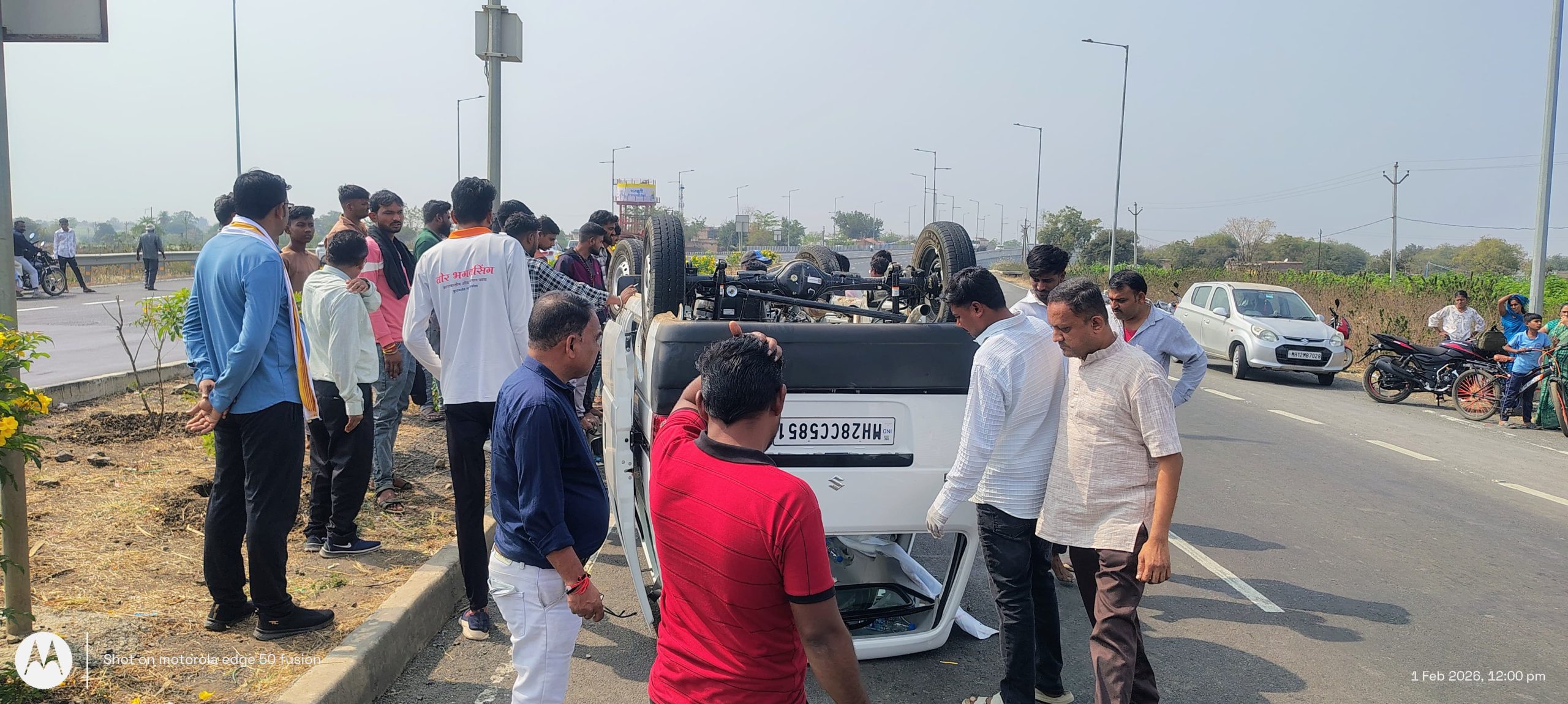 राष्ट्रीय महामार्गावर कार दुभाजकावर आदळली, 5 प्रवासी जखमी