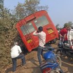 भरधाव एसटी बस खड्ड्यात कलंडली; थरारक दुर्घटनेने मार्ग हादरला