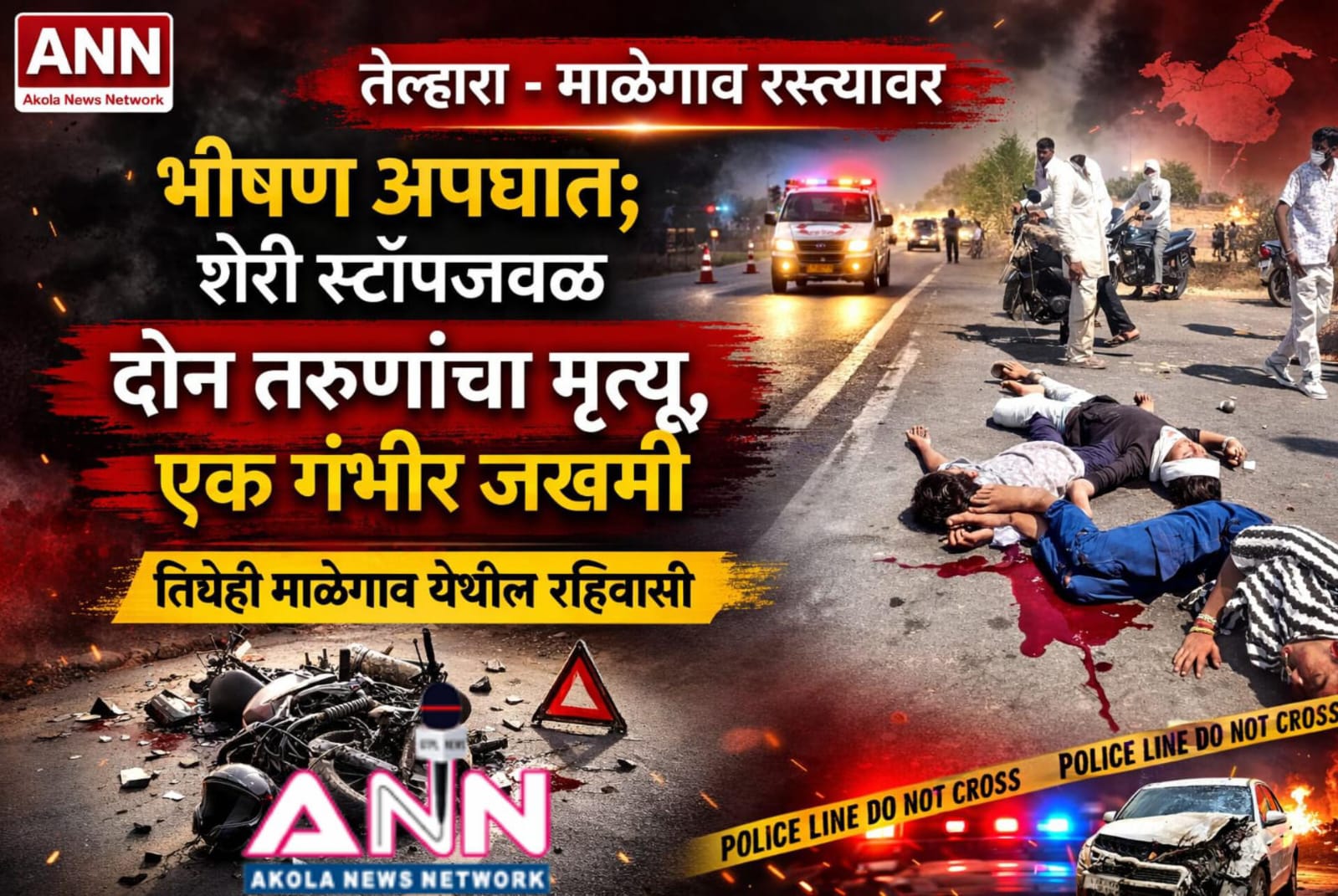 तेल्हारा-माळेगाव रस्त्यावर भीषण अपघात; शेरी स्टॉपजवळ दोन तरुणांचा मृत्यू, एक गंभीर जखमी