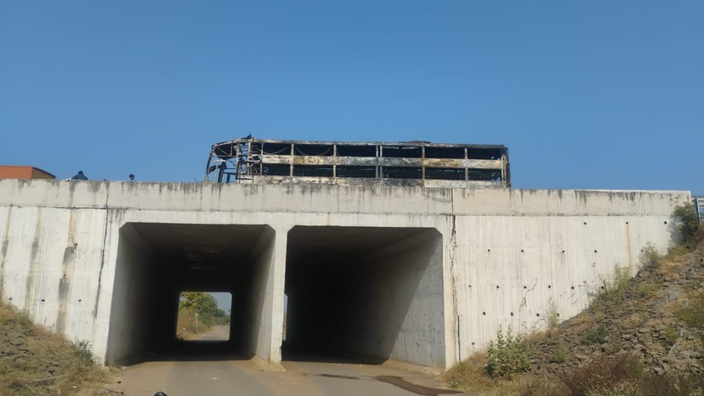 समृद्धी महामार्गावर सुरक्षिततेचा प्रश्न पुन्हा एकदा ऐरणीवर आला आहे. नागपूरहून मुंबईकडे जाणाऱ्या एका खासगी प्रवासी बसला अचानक आग लागून काही क्षणांतच बस जळून खाक झाल्याची धक्कादायक घटना बुलढाणा जिल्ह्यातील मेहेकर तालुक्यात शिवणी पिसा गावाजवळ घडली. सुदैवाने चालकाच्या प्रसंगावधानामुळे बसमधील 35 प्रवासी वेळेत बाहेर पडल्याने मोठी जीवितहानी टळली.