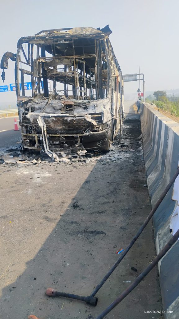 आग लागण्याचे नेमके कारण अद्याप स्पष्ट झाले नसले तरी शॉर्टसर्किट किंवा तांत्रिक बिघाडामुळे आग लागली असावी, असा प्राथमिक अंदाज व्यक्त केला जात आहे. घटनेची माहिती मिळताच पोलिस, महामार्ग पोलीस आणि अग्निशमन दल घटनास्थळी दाखल झाले. अग्निशमन दलाने आगीवर नियंत्रण मिळवले, मात्र तोपर्यंत बस पूर्णपणे जळून खाक झाली होती.