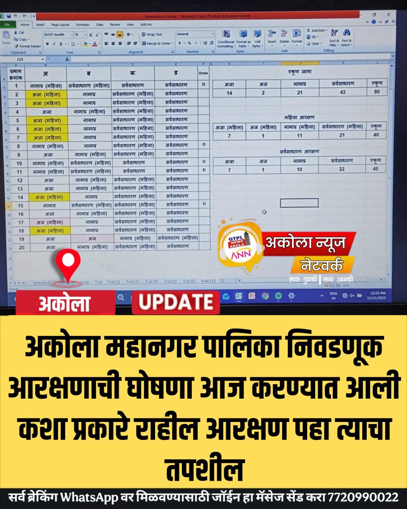 अकोला महानगरपालिकेच्या निवडणुकीचे आरक्षण जाहीर!कोणत्या प्रभागात कोणासाठी राखीव? पाहा संपूर्ण यादी Ganesh Bhute November 11, 2025 0 Views- Share