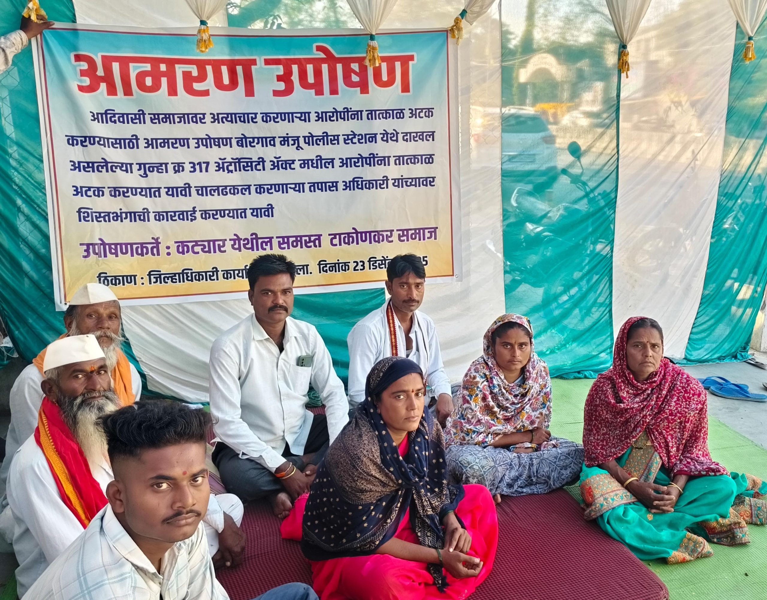 कट्यार येथील आदिवासी समाजातील कुटुंबावर जातीवाचक शिवीगाळ, अश्लील अपमान व जीवे मारण्याच्या धमक्यांचा गंभीर प्रकार घडून दोन महिने उलटले तरीही आरोपींना अटक न झाल्याने न्याययंत्रणेच्या कार्यक्षमतेवर प्रश्नचिन्ह उपस्थित झाले आहे. या निष्क्रियतेविरोधात पीडित कुटुंबाने आज जिल्हाधिकारी कार्यालयासमोर शांततामय उपोषण सुरू केले आहे.