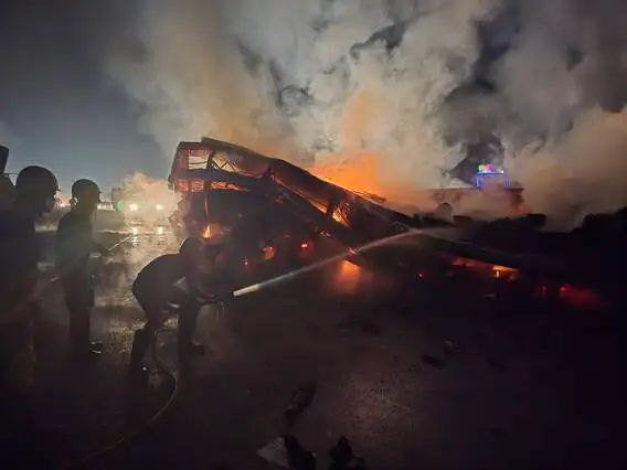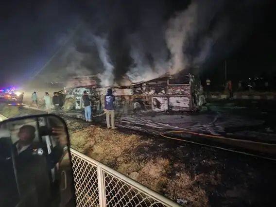 भीषण बस अपघात! कंटेनर–आराम बस धडक; आगीत १७ जणांचा होरपळून मृत्यू